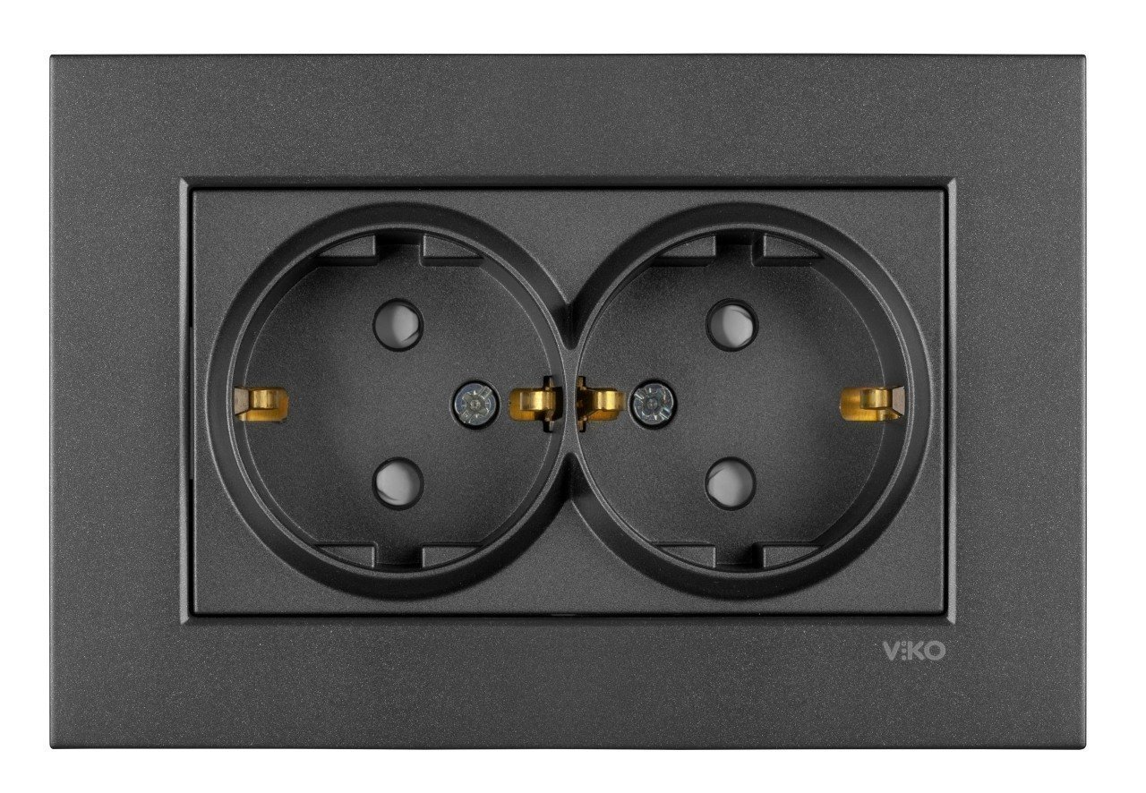 Viko Artline Novella İkili Topraklı Priz Çerçeveli Füme ( Komple )
